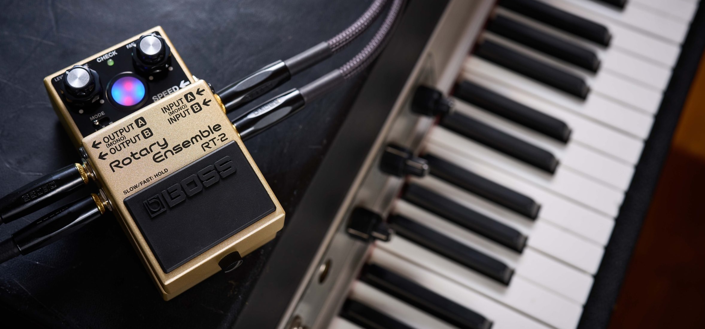 No doubt, Roland want to sell this pedal to guitar players. But, hold on! The promotional video shows the RT-2 in use with a Fantom 07. Will miracles ever cease? Check the Boss article about effect pedals for keyboards.