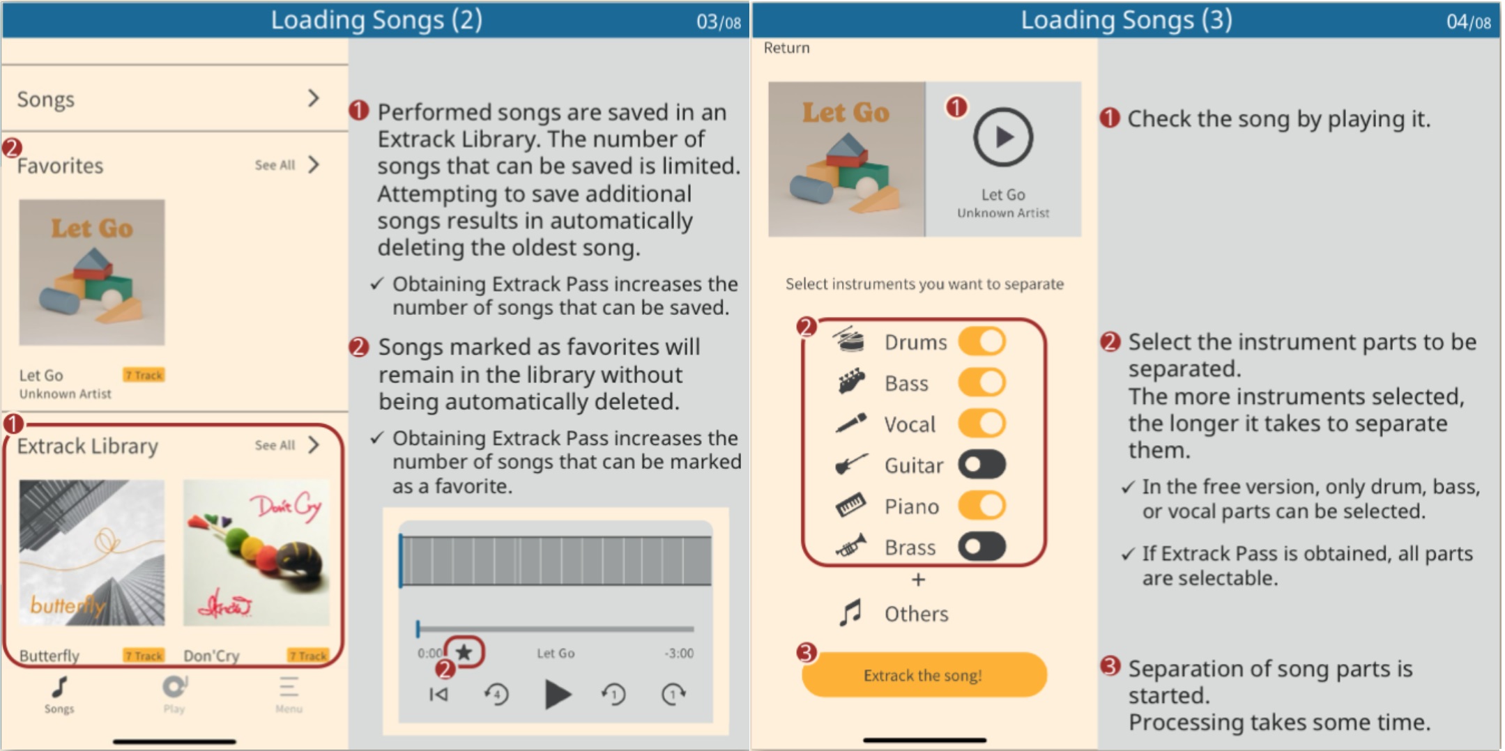 - Up to 50 songs in your Extrack Library (Free: 5 songs)