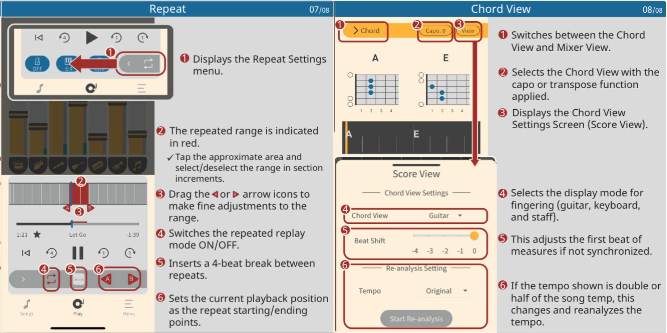 Extrack automatically transcribes chords for guitar and piano, helping users learn their favorite songs with confidence. It also features song structure analysis, allowing users to repeat sections, skip by measure, and adjust playback speed.