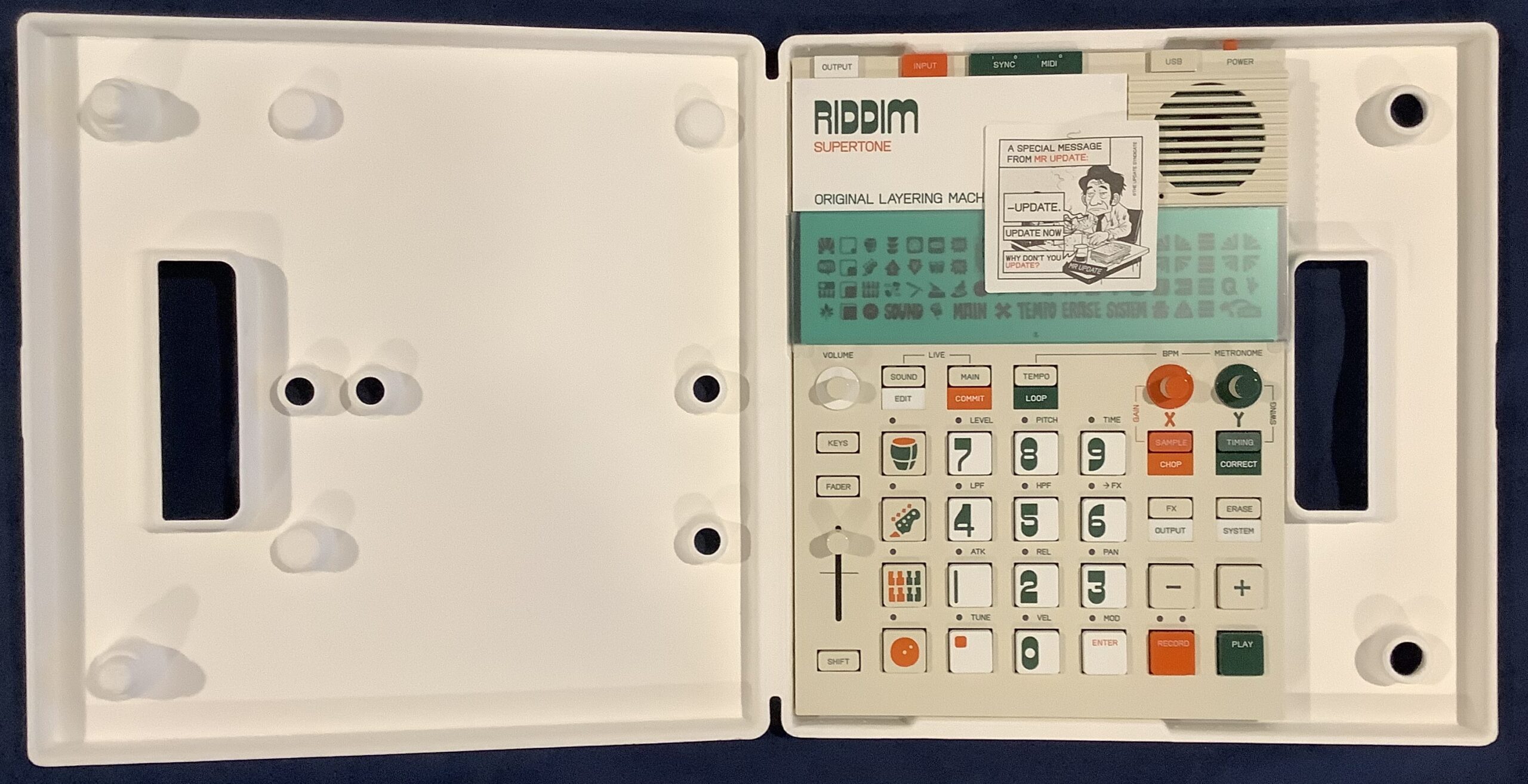 Both Riddim and Ting arrive in a brown box. Opening the brown box is like tearing into an overgrown Pocket Operator. It feels the same way.