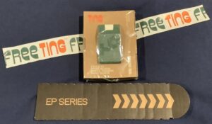 The EP-40 ships in a box of its own. No secret, Teenage Engineering is an industrial design studio as much as it innovates consumer electronic devices. The EP-40 box is an example of TE’s sustainable formed paper packaging. Printed graphics reproduce quite well on this stuff.